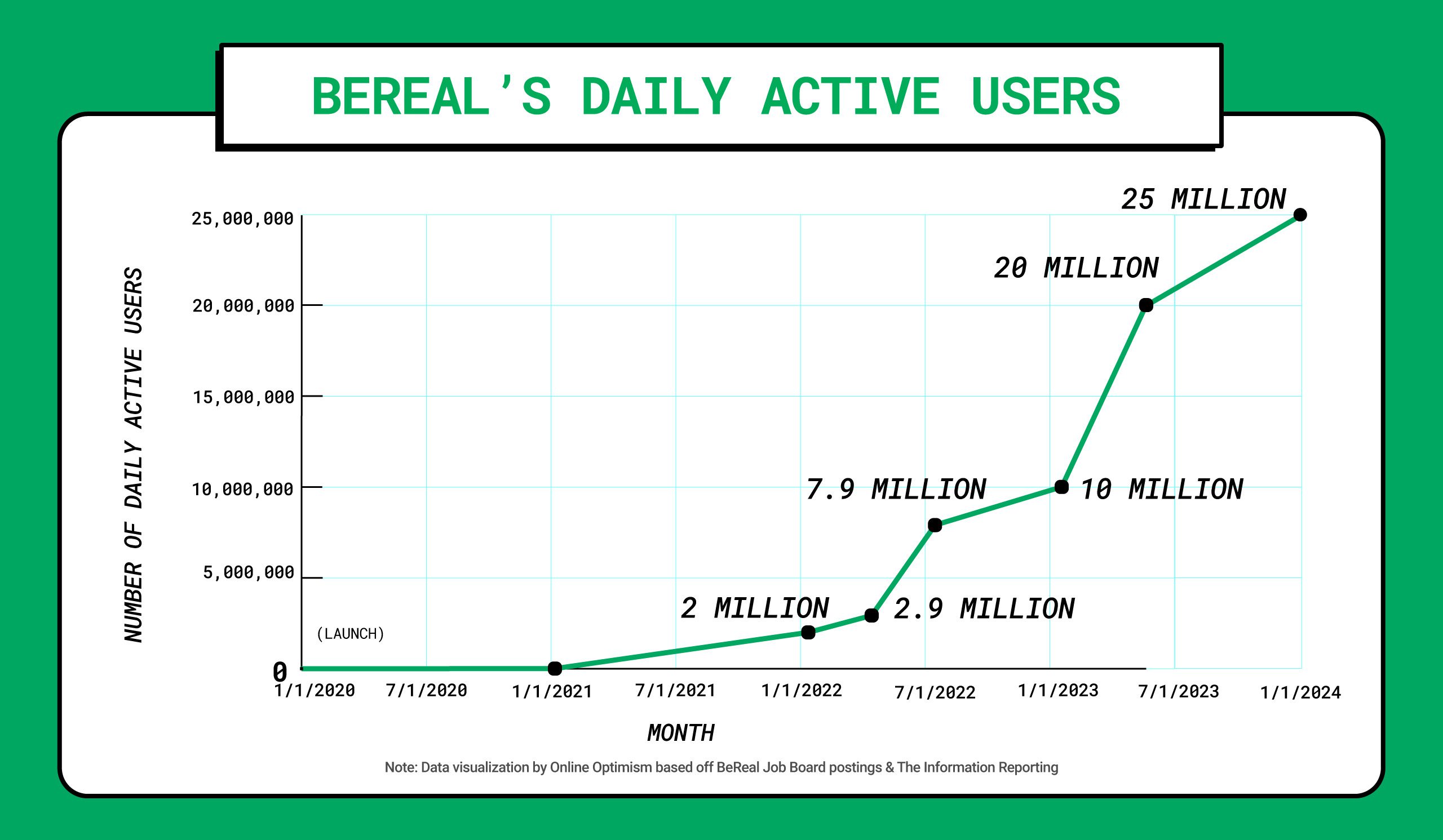 - Holt, K. (2023, April 24). BeReal says it has more than 20 million daily active users. Engadget. Retrieved May 1, 2023, from https://bit.ly/4iKoMQn.